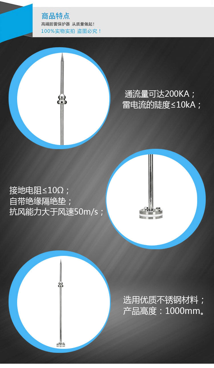 可直接安裝于小型設(shè)施頂部,不需要單獨(dú)引下線 。