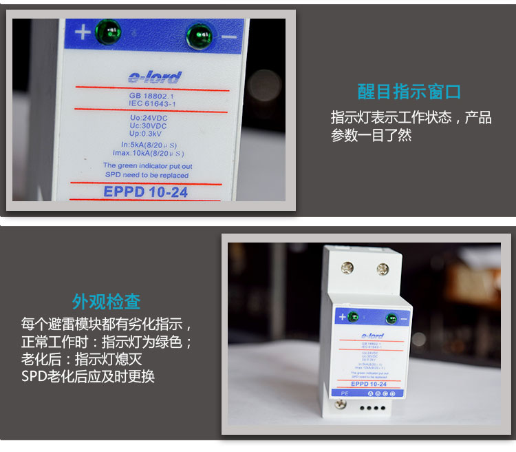 EPPD系列低壓直流型電源SPD是單體電源防雷模塊,防止感應(yīng)過(guò)電壓或操作過(guò)電壓對(duì)低壓交流用電設(shè)備的損壞。
